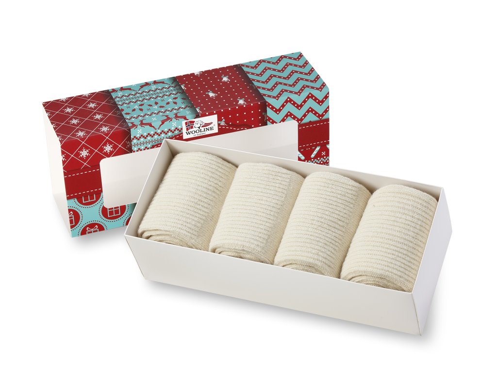 Darčekové balenie - 4 páry ponožiek Merino Natural Wool 5 dámske, krémové