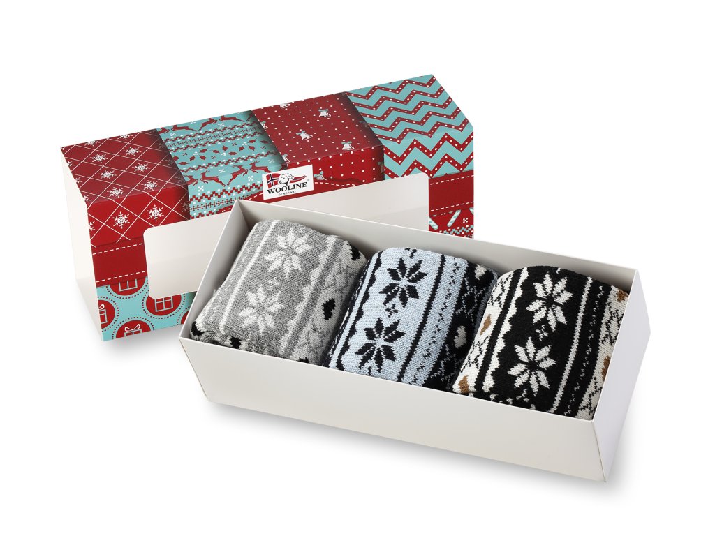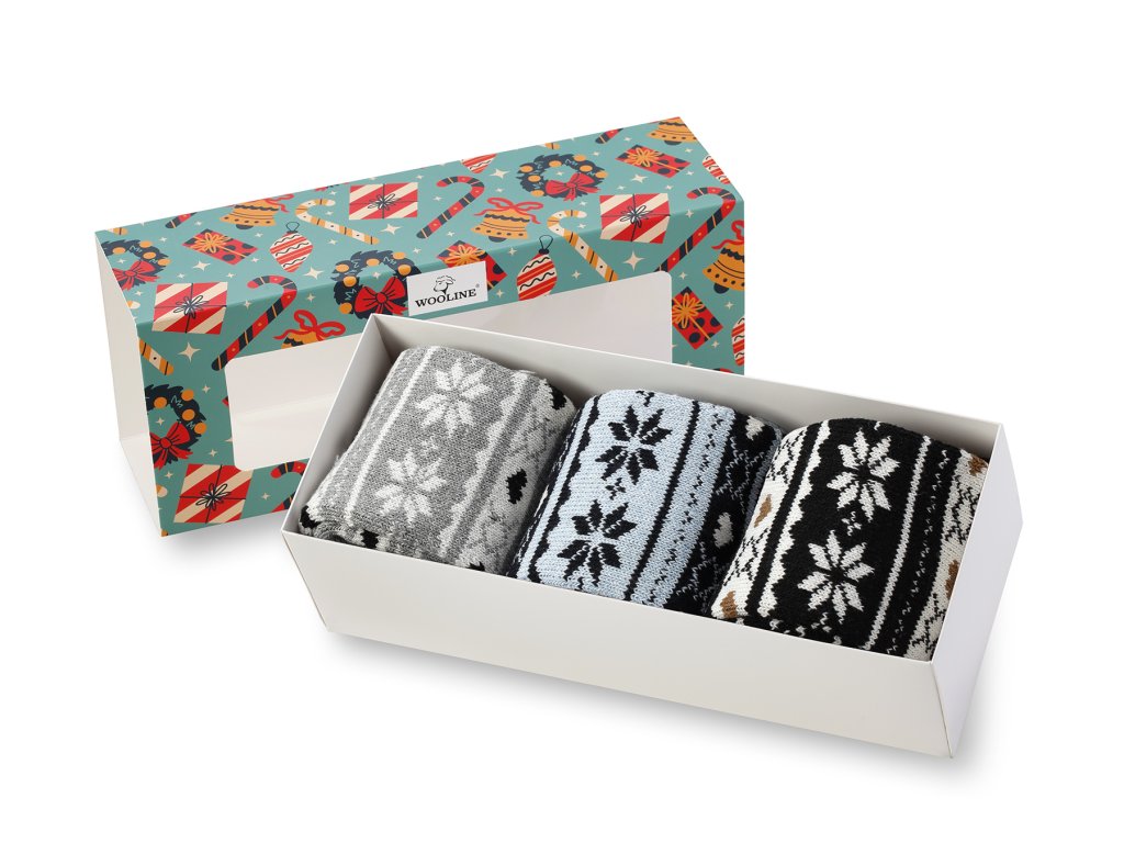 Venujte darčekové balenie praktických hrejivých ponožiek Vašej drahej polovičke. Darčeková krabička obsahuje 3 páry ponožiek danej veľkosti v elegantnom darčekovom prevedení. Hrejivé vlnené ponožky Natural Wooline Wool pre dámy sú vyrobené z veľmi jemnej a hebkej vlny. Súprava vlnených ponožiek obsahuje 3 páry ponožiek v rôznych motívoch. Motívy zodpovedajú motívom na obrázkoch. Vďaka použitému materiálu sa ponožka prispôsobí veľkosti chodidla.