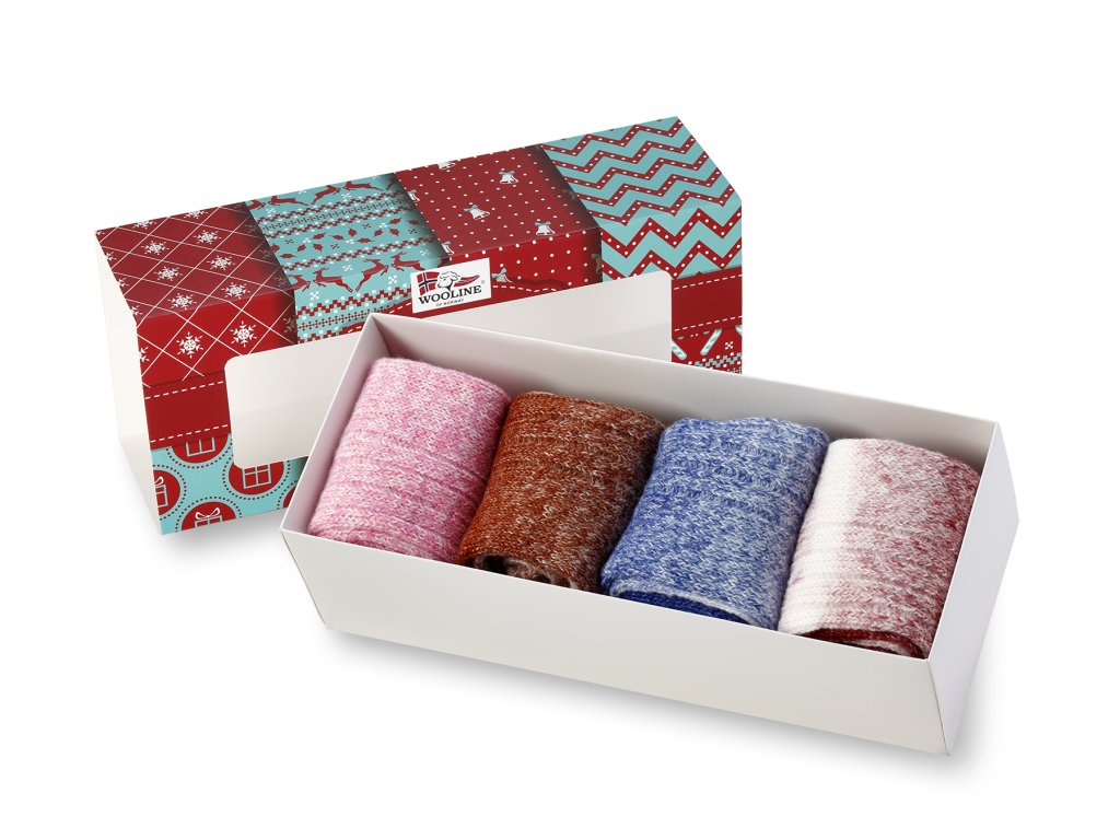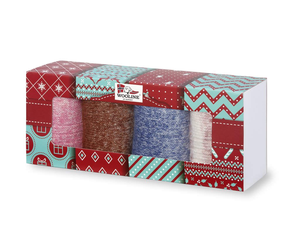 Cenovo výhodná darčeková sada hrejivých "trošku iných" vlnených ponožiek v pestrofarebných farbách dúhy. Zamilujte si tieto veselé ponožky a užite hrejivý pocit nôh, ktoré Vám tieto dúhové ponožky zaistia. Darčekové balenie obsahuje 4 páry dámskych ponožiek.