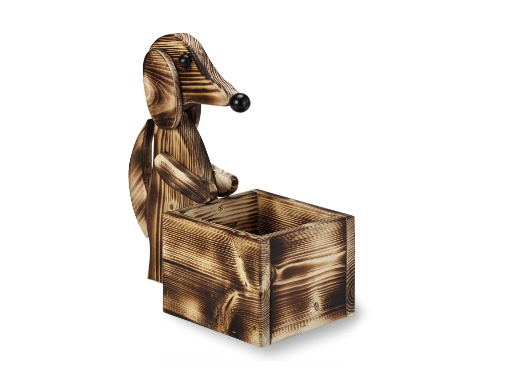 Drevený obal na kvetináč motív psík, opálené drevo 30 x 33 x 15,5 cm