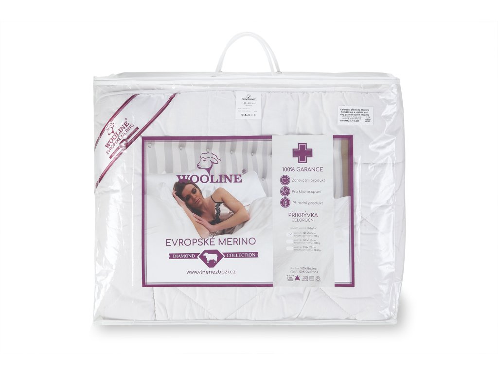 Prikrývka Wooline s výplňou z ovčej vlny ponúka špičkové parametre vo všetkých ohľadoch. Prikrývka má vlastnosti používané pri lekárskej rehabilitácii. Má schopnosť udržiavať teplotu tela na konštantnej úrovni, čo umožňuje odpočinúť si a zaspať za pohodlných podmienok. Poskytuje dobré vetranie, ľudská koža dýcha správne a telo je dostatočne okysličené. Rozmer prikrývky je 140 x 200 cm.