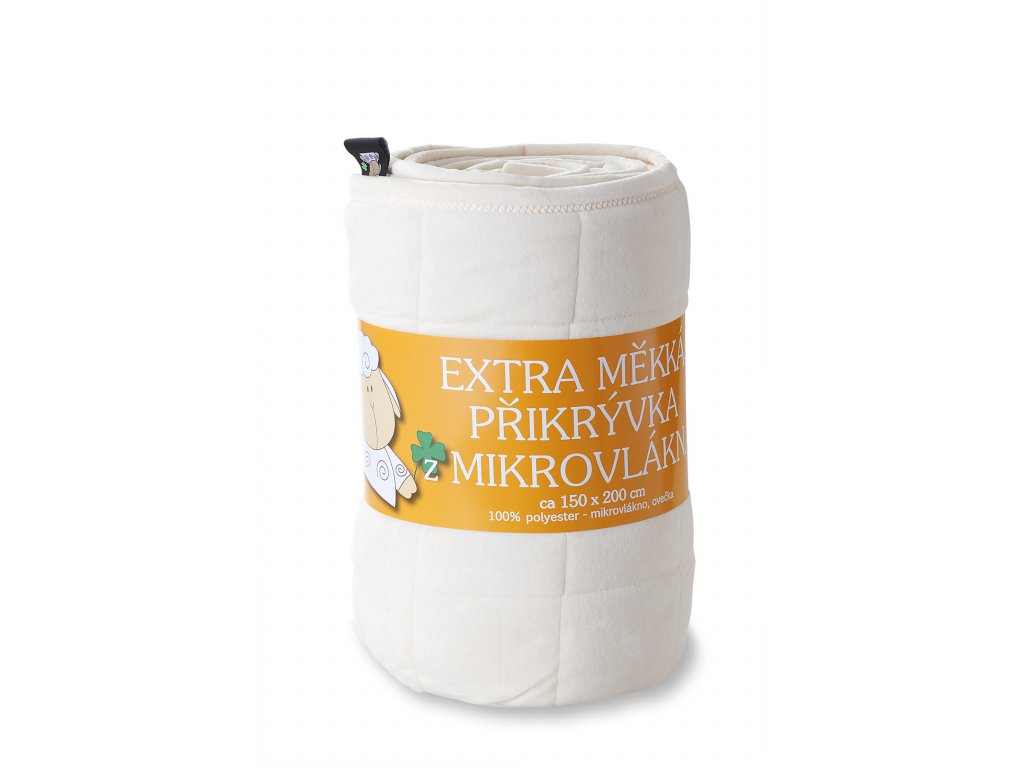 Materiál: 100% mäkčený polyester / mikrovlákno, Prevedenie: obojstranné - rubová strana je jednofarebná svetložltá s prešitými štvorcami, lícová strana je jednofarebná v prevedení svetlá biela farba, Rozmer: 150 x 200 cm,